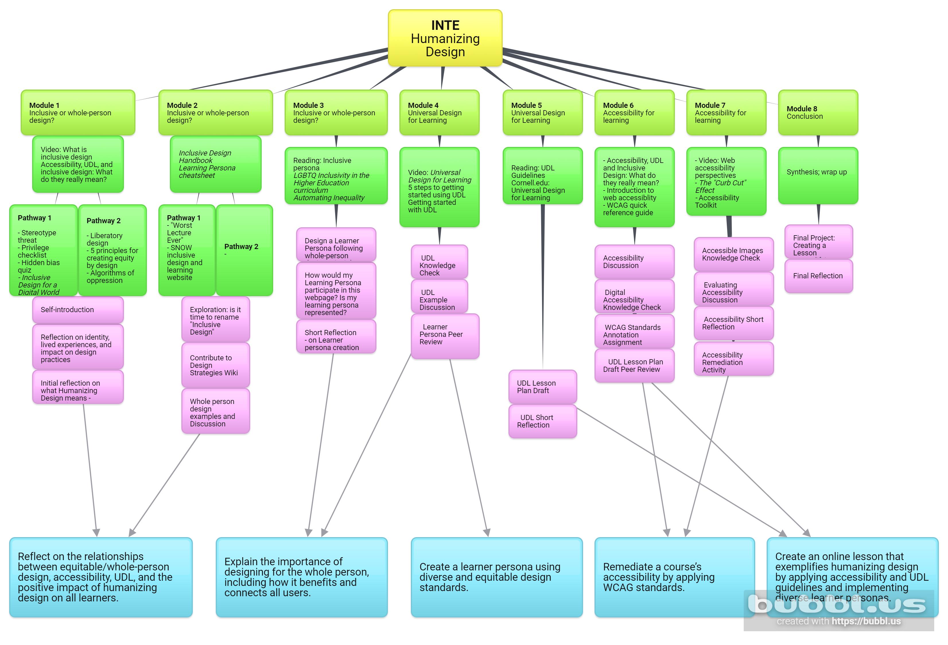 In the second phase, I was in charge of reviewing and finalizing the modules, as well as organizing, designing and finalizing the course in its entirety. During that phase, I consulted with a mentor once every 2 weeks. With her guidance, I created an extensive ID course map and prepared the course documents to be presented to the respective approval committees at the School of Education and Human Development (University of Colorado, Denver).
